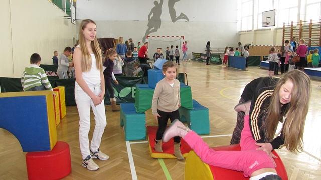 Jak co roku gościliśmy w szkole przedszkolaki, dzieci 5. i 6. letnie z hrubieszowskich przedszkoli nr 1, 2 i 5. Dzień Otwarty dla tych dzieci odbył się we wtorek, 09.04. 2013 r. Osiemdziesięcioro dzieci świetnie bawiło się w sali gimnastycznej i uczestniczyło w specjalnie dla nich zorganizowanych zabawach i grach sportowych przygotowanych przez nauczycieli wychowania fizycznego.