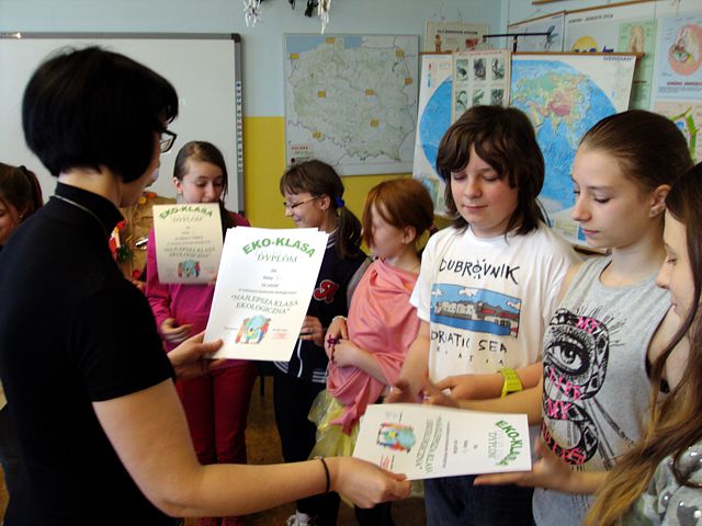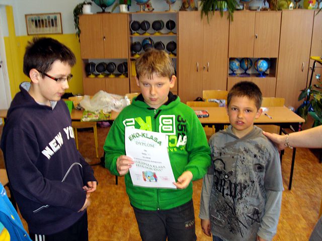 Wszystkim dopisywały dobre humory, uczniowie z wielkim zapałem wykonywali zadania, a przy tym udowodnili że nie wygrana, a dobra zabawa jest najważniejsza. Na koniec gospodarzom klas wręczone zostały dyplomy i nagrody. Najlepszą klasą ekologiczną okazała się klasa V b, II miejsce zajęła klasa V c, III miejsce zajęła klasa IV a. Z całą pewnością była to doskonała okazja dla uczniów do pogłębienia swojej wiedzy ekologicznej. Za organizację konkursu były odpowiedzialne pani Justyna Marcych i pani Iwona Chrząstek.