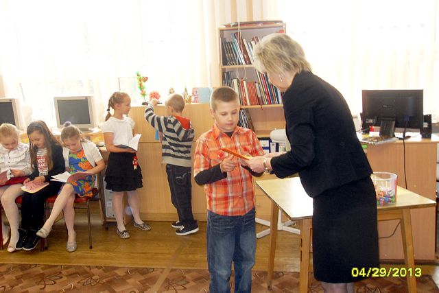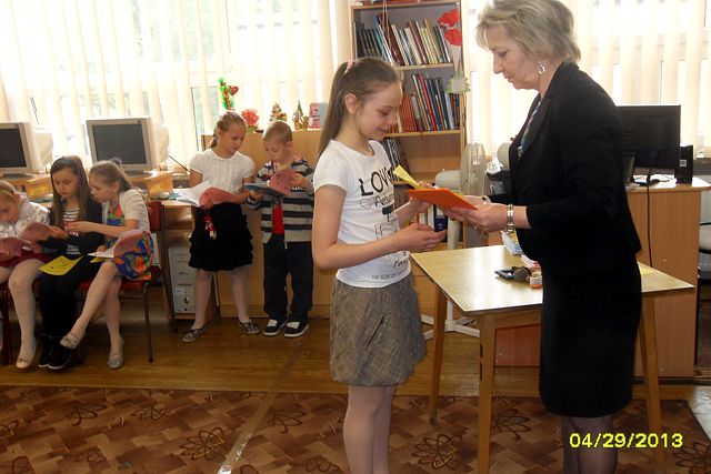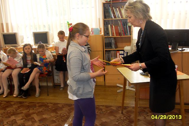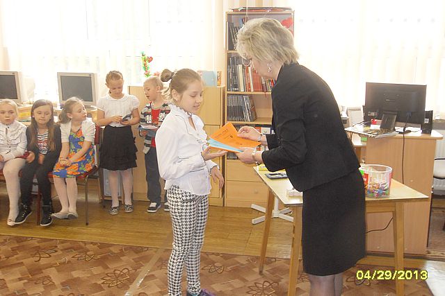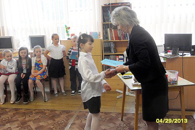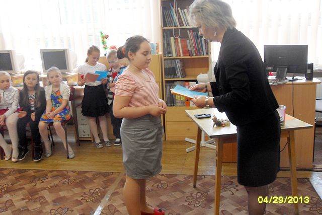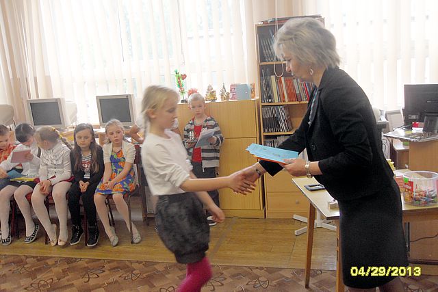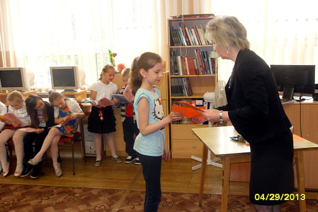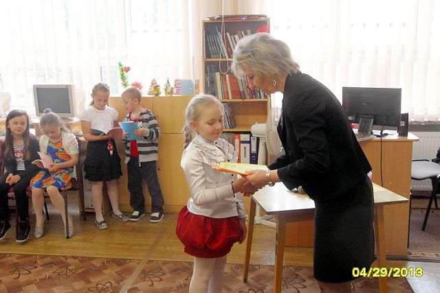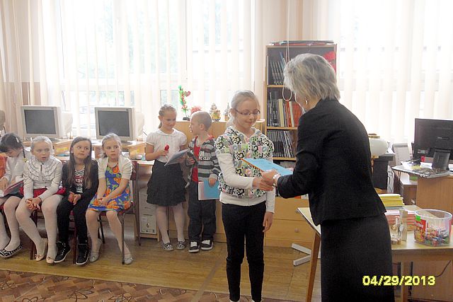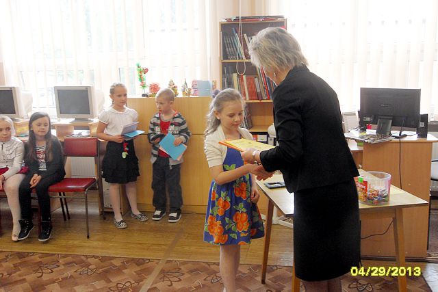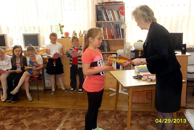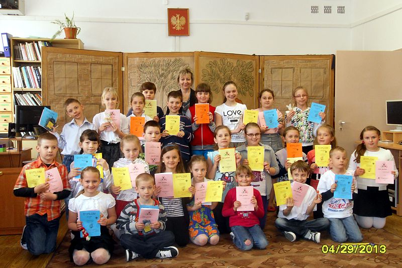 Jury zdecydowało, że nagrodzi 10.uczniów, a 13. osobom przyzna wyróżnienia. Podsumowanie konkursu odbyło się w czytelni szkolnej w poniedziałek, 29.04.2013 r. Laureaci i wyróżnieni uczniowie w nagrodę otrzymali dyplomy , małe upominki i co najważniejsze publikację - zbiorek wierszy pokonkursowych. Na koniec każde dziecko otrzymało słodycze, a potem wszyscy stanęli do wspólnego zdjęcia.