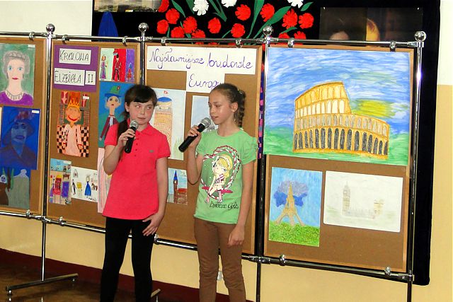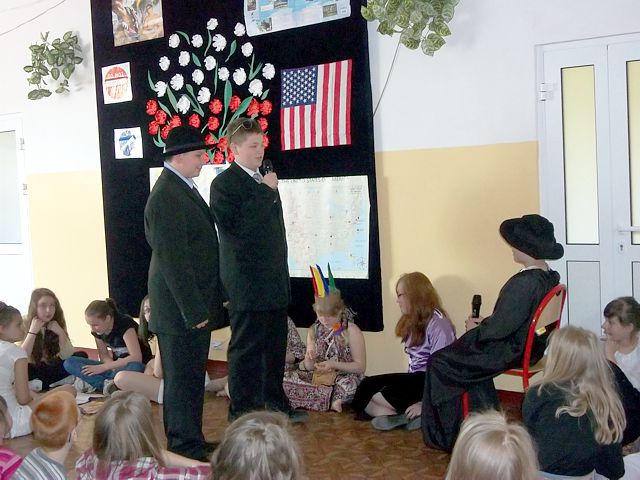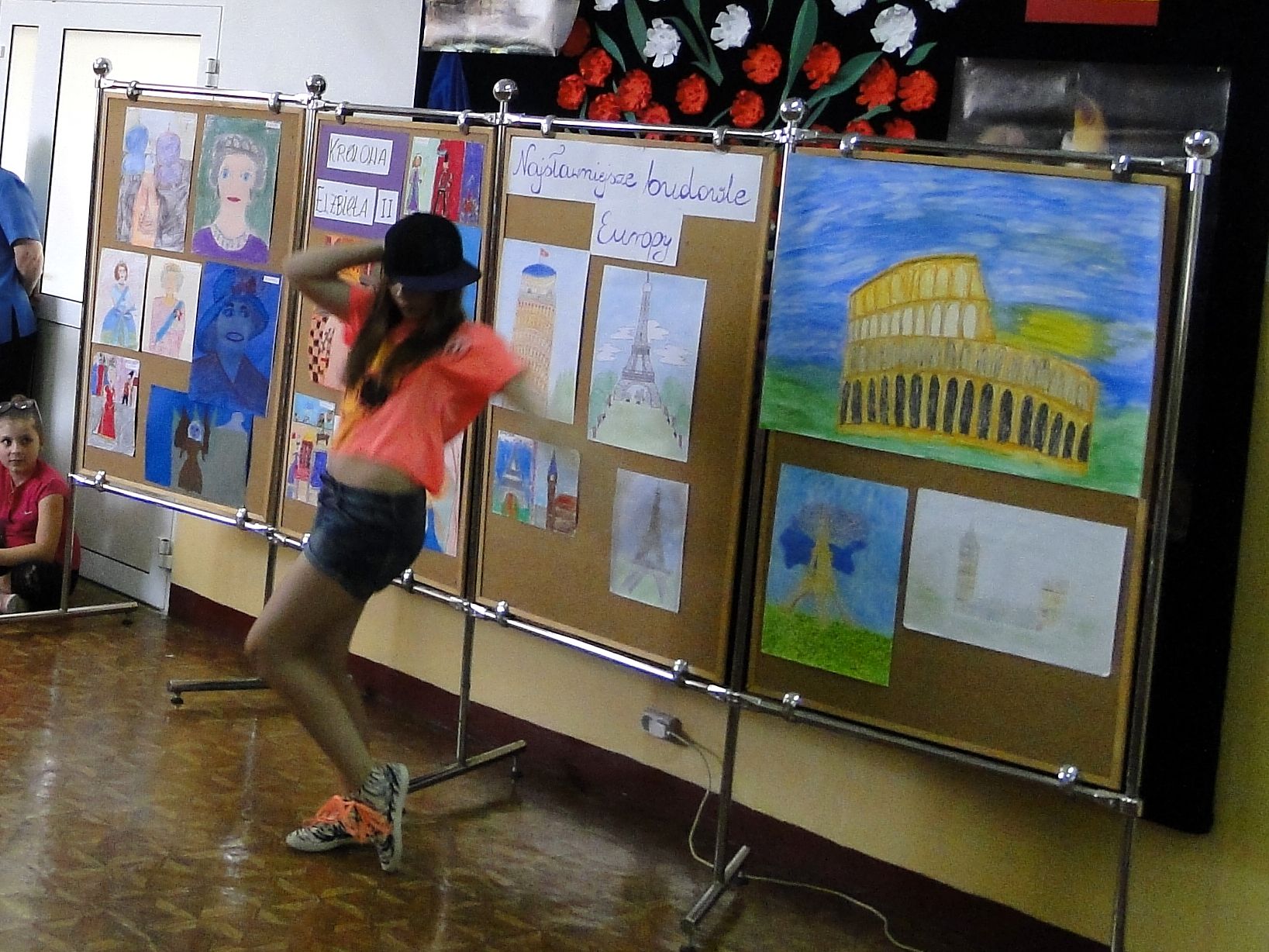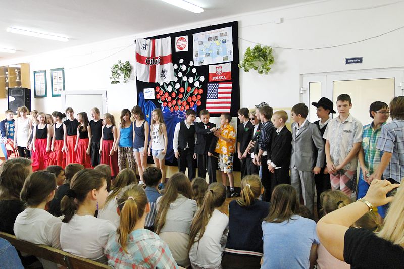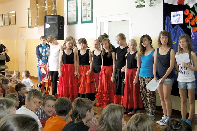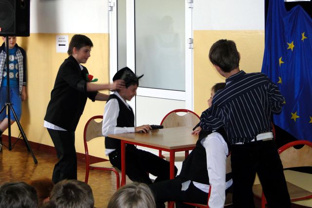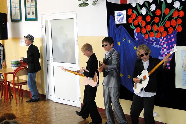 We wtorek przedstawienie przygotowała klasa V a. Motywem przewodnim przedstawienia był wehikuł czasu, który przenosił nas w czasie w różne zakątki krajów europejskich. W środę odbył się Konkurs Wiedzy o Unii Europejskiej.