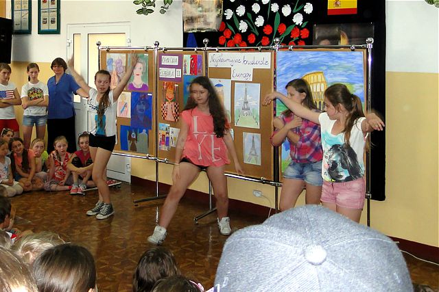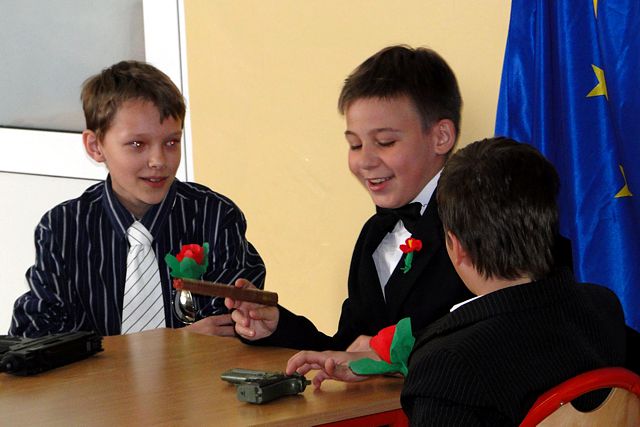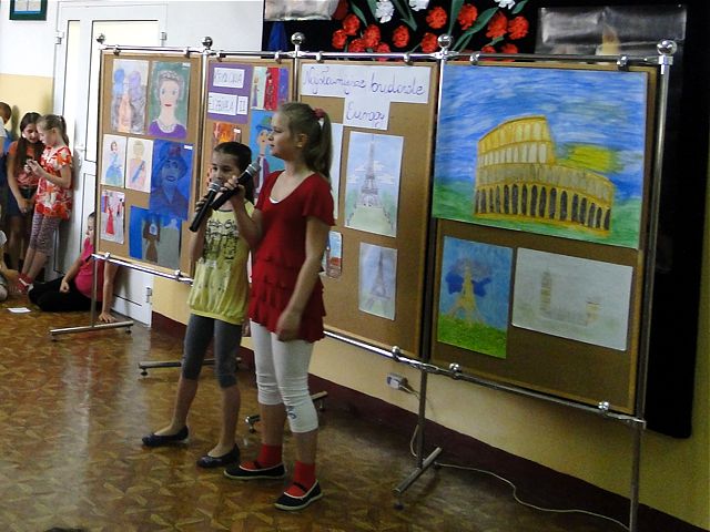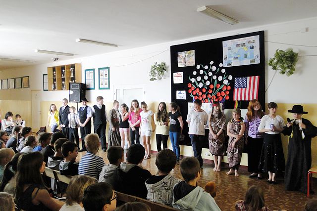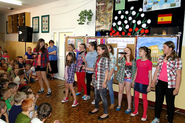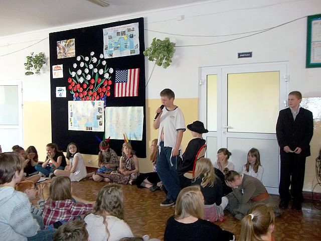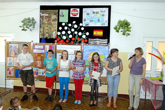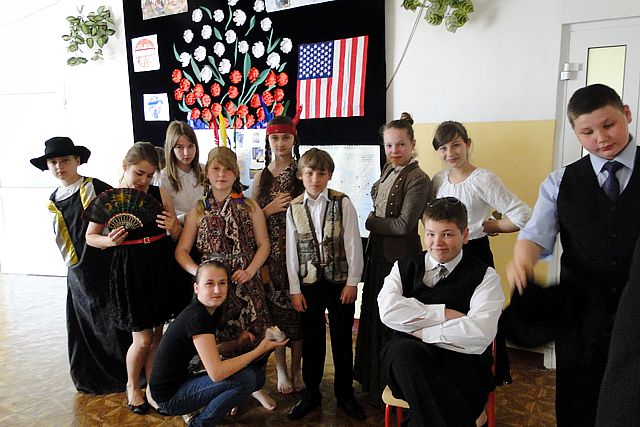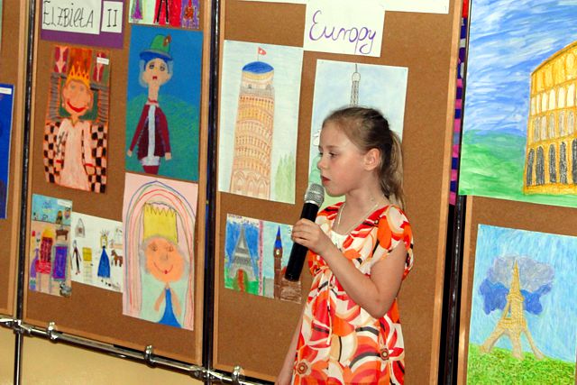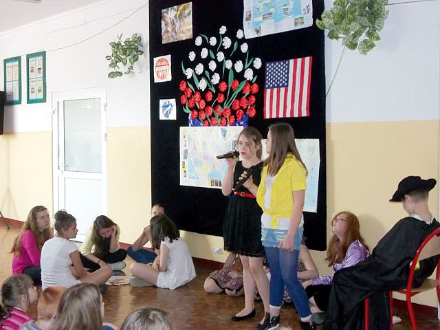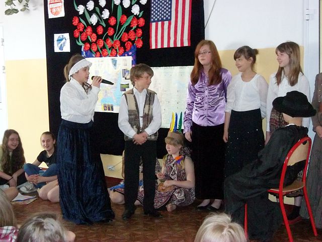 We wtorek przedstawienie przygotowała klasa V a. Motywem przewodnim przedstawienia był wehikuł czasu, który przenosił nas w czasie w różne zakątki krajów europejskich. W środę odbył się Konkurs Wiedzy o Unii Europejskiej.
