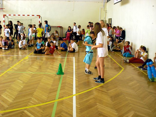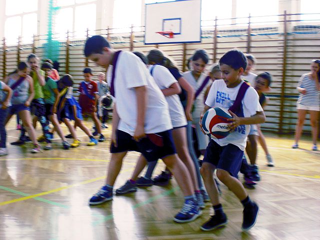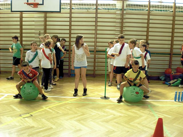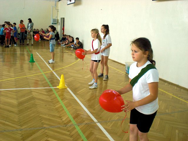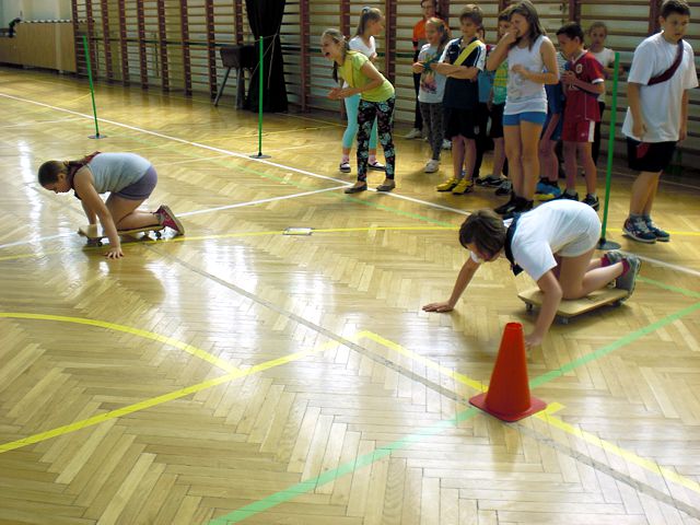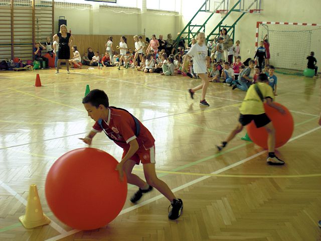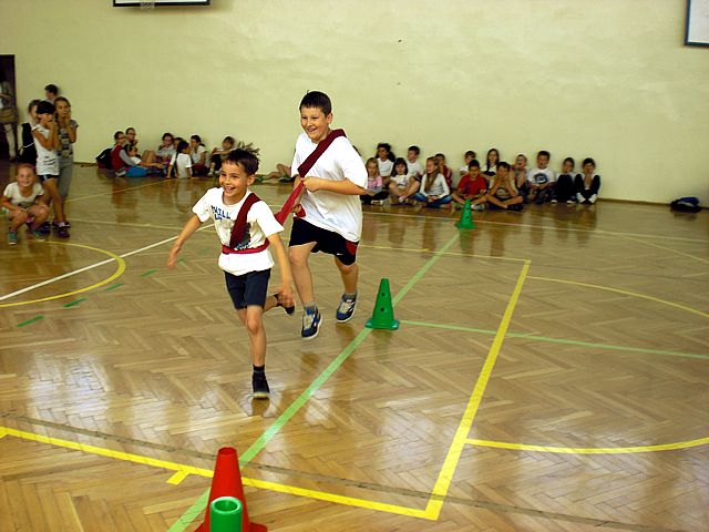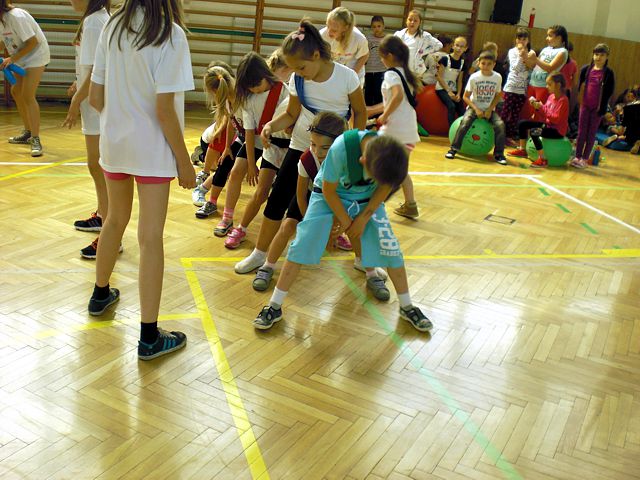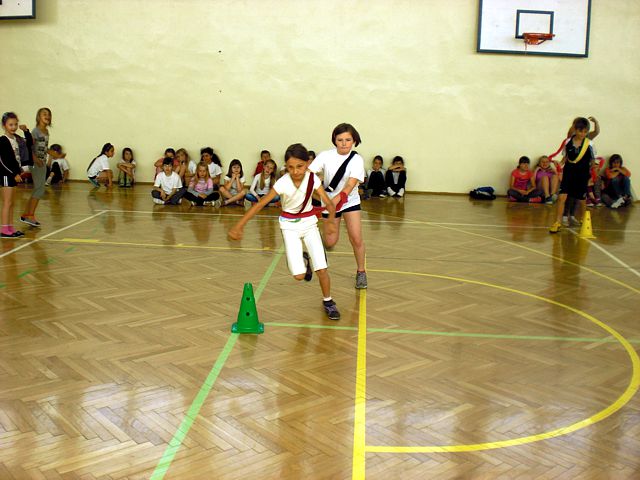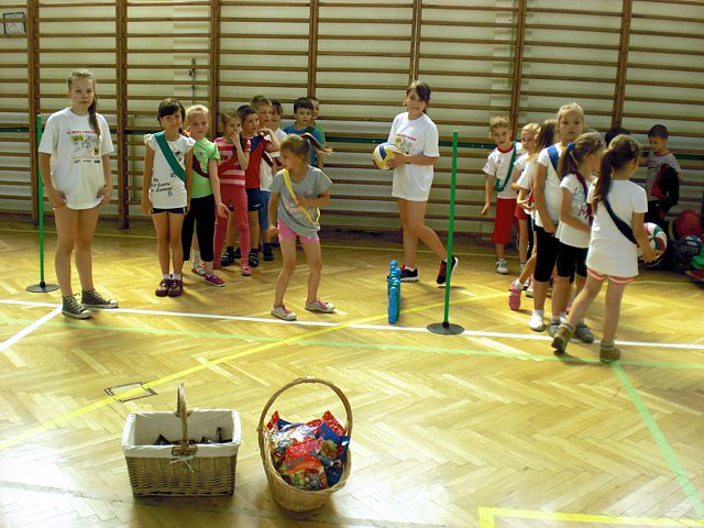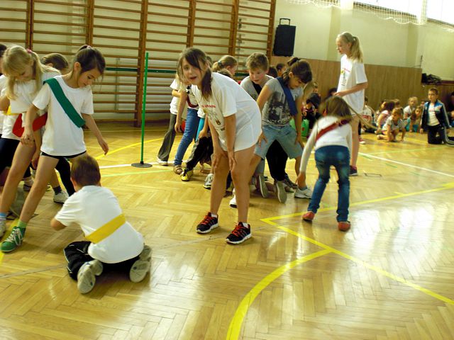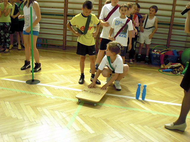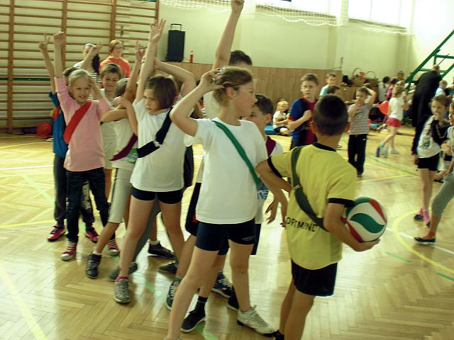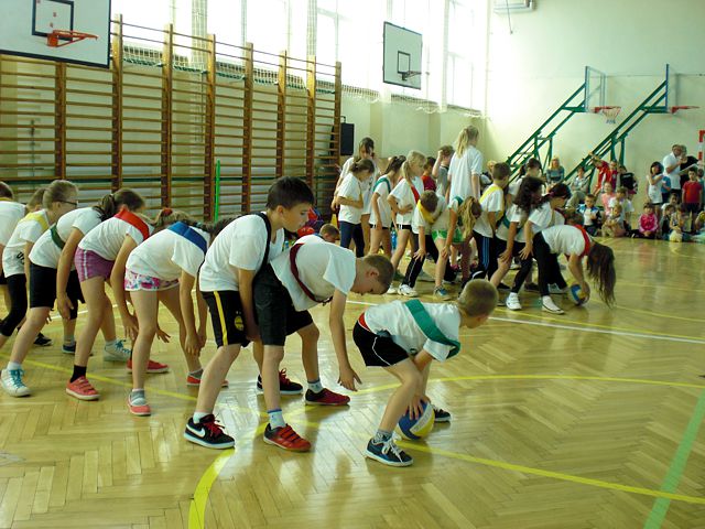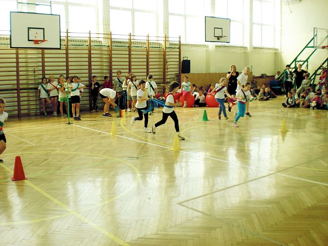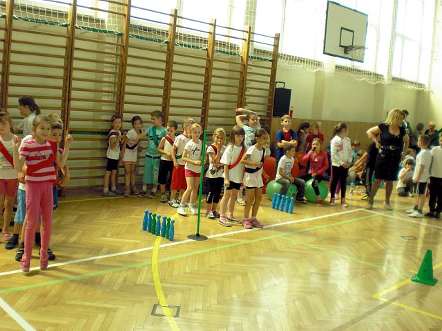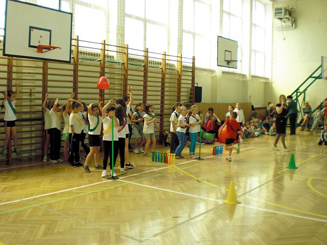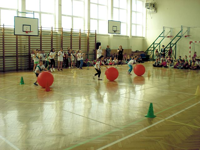 Samorząd Uczniowski młodszej grupy wiekowej zorganizował Dzień Dziecka w atmosferze radosnych zabaw sportowych. Klasy pierwsze, drugie i trzecie brały udział w różnych konkurencjach, m.in. toczenie piłek slalomem, przenoszenie ulubionych pluszaków, jazda wózkami, pokonywanie tunelu, „zaprzęgi konne” i „piłki skoczki”. Uczestnikom turnieju niezawodnie kibicowali koledzy i koleżanki z oddziału przedszkolnego.