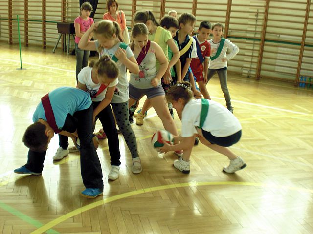 Samorząd Uczniowski młodszej grupy wiekowej zorganizował Dzień Dziecka w atmosferze radosnych zabaw sportowych. Klasy pierwsze, drugie i trzecie brały udział w różnych konkurencjach, m.in. toczenie piłek slalomem, przenoszenie ulubionych pluszaków, jazda wózkami, pokonywanie tunelu, „zaprzęgi konne” i „piłki skoczki”. Uczestnikom turnieju niezawodnie kibicowali koledzy i koleżanki z oddziału przedszkolnego.