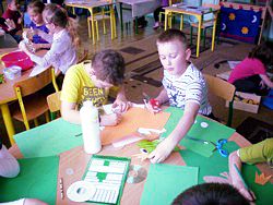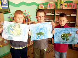 5 maja to kolejny dzień Projektu. Uczniowie dowiedzieli się: Co rechocze w trawie? Dzieci czytały wiersze Doroty Gellner, z książeczki pt. "Żaby", a w albumach i encyklopediach szukały zdjęć i ciekawych informacji na ich temat. Następnie każdy z uczniów mógł wykonać własnoręcznie żabkę, z dostępnych materiałów plastycznych, lub wykorzystać środki dydaktyczne, które są do dyspozycji w Ośrodkach Zainteresowań.
