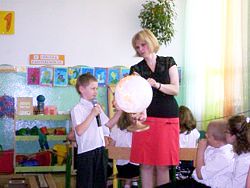 - Popis pokazywania na globusie kontynentów i wybranych państw Europy. Wyścig p. dyrektor Danuty Krawczuk z klasowym mistrzem pokonywania Sera szwajcarskiego.