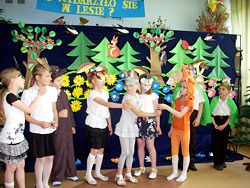 Druga część pokazu to przedstawienie ekologiczne "Co wydarzyło się w lesie". Uczniowie zaprezentowali zdolności aktorskie, muzyczne, plastyczne oraz poetyckie. Całemu pokazowi towarzyszyła galeria prac plastyczno - konstrukcyjnych.